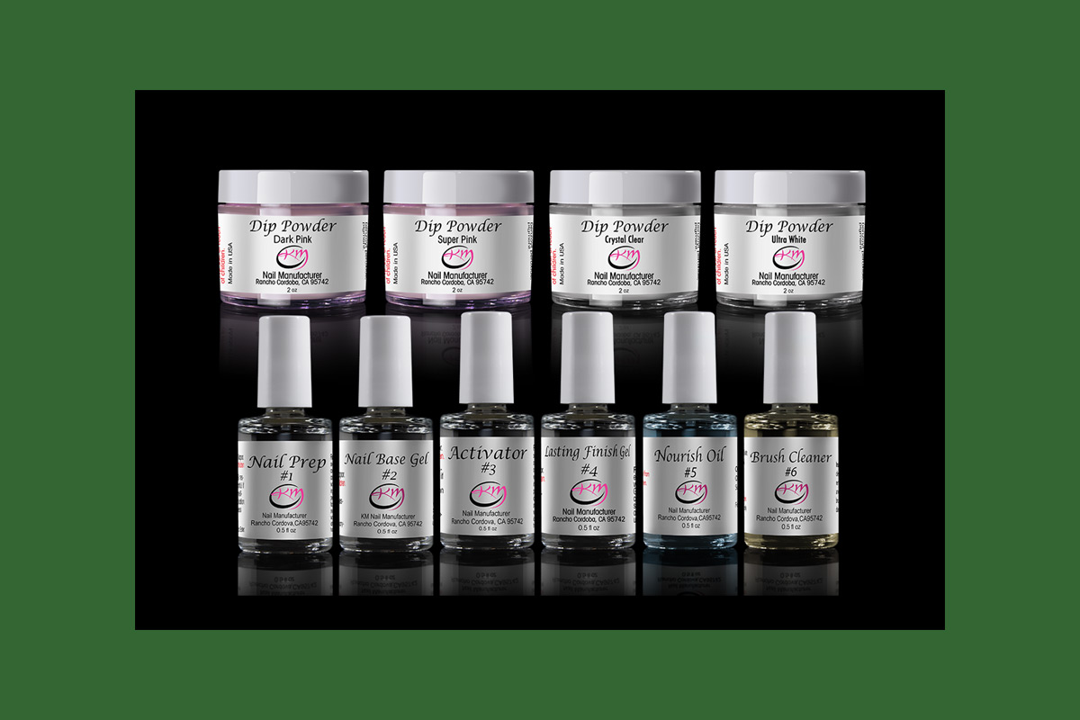 KM Dip Powder kit includes the multiple products: Liquid Steps and Powders